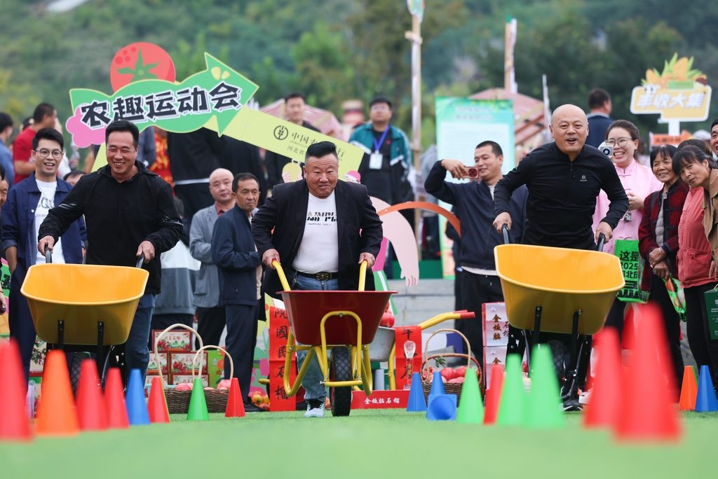 9月23日,在河北省元氏縣封龍書院,人們在慶祝活動中參加農趣運動會。新華社發