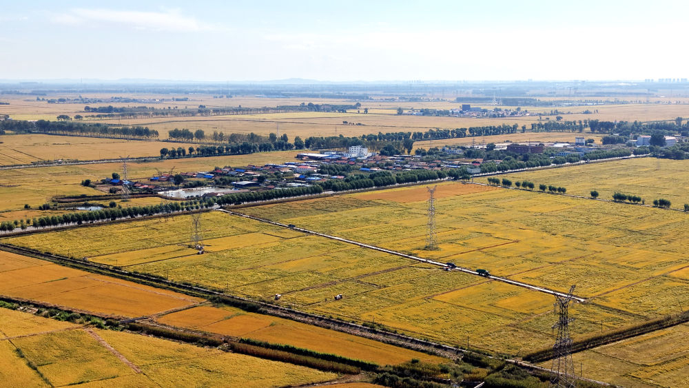 ↑2025年9月17日在吉林省長春市農安縣三崗鎮永遠村拍攝的金黃色的稻田。(無人機照片)CICPHOTO/高東風 攝