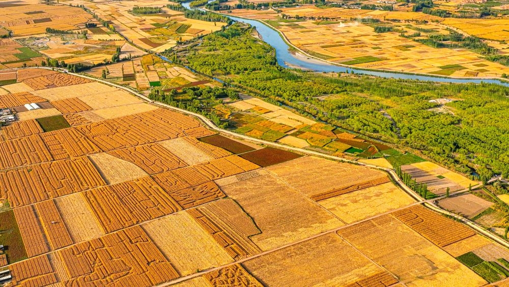 秋日勝景,豐收在望。俯瞰廣袤田野,色彩斑斕如畫,每一抹飽滿的色彩,都訴說著收獲的喜悅。