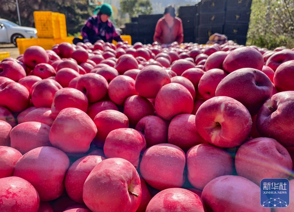 ↑ 10月30日,甘肅省平?jīng)鍪徐o寧縣賈河鄉(xiāng)農(nóng)民在分揀蘋果(手機(jī)照片)。新華社發(fā)(侯崇慧攝)
