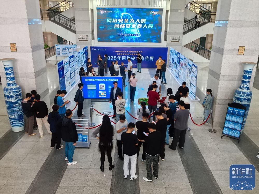 ↑ 9月16日,哈爾濱理工大學師生參加網絡安全宣傳周活動。新華社發