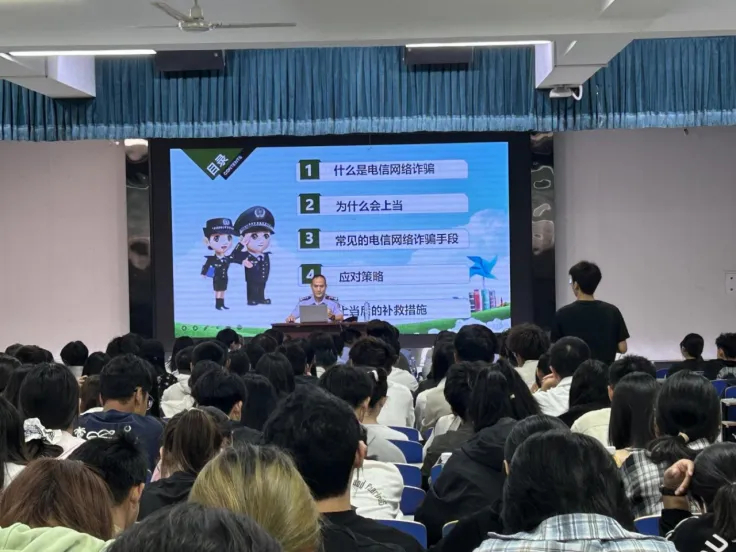 活動現場由橋西公安分局網安大隊的同志對電信詐騙相關內容進行案例分享和風險提醒,向師生們宣傳網絡安全法律法規,揭露網絡違法犯罪伎倆,傳授防范公民個人信息泄露方法。同時,結合典型案例,深入淺出地講解了網絡詐騙、網絡謠言、網絡賭博等常見網絡安全問題的危害及防范措施,引導師生們自覺遵守網絡安全法律法規,增強網絡安全意識,提高自我保護能力。