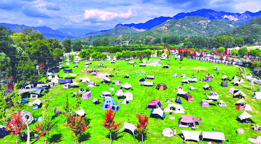 節日期間,游客在靈壽縣錦繡大明川景區露營地休閑度假。通訊員 白云飛 攝