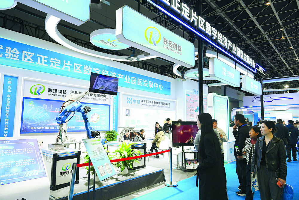 市民參觀中國(河北)自由貿易試驗區正定片區數字經濟產業園區發展中心展區。