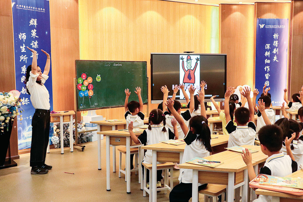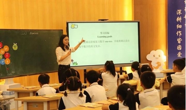 成都市鹽道街中學(xué)外語(yǔ)學(xué)校小一貫通試點(diǎn)班英語(yǔ)課現(xiàn)場(chǎng)。受訪者供圖