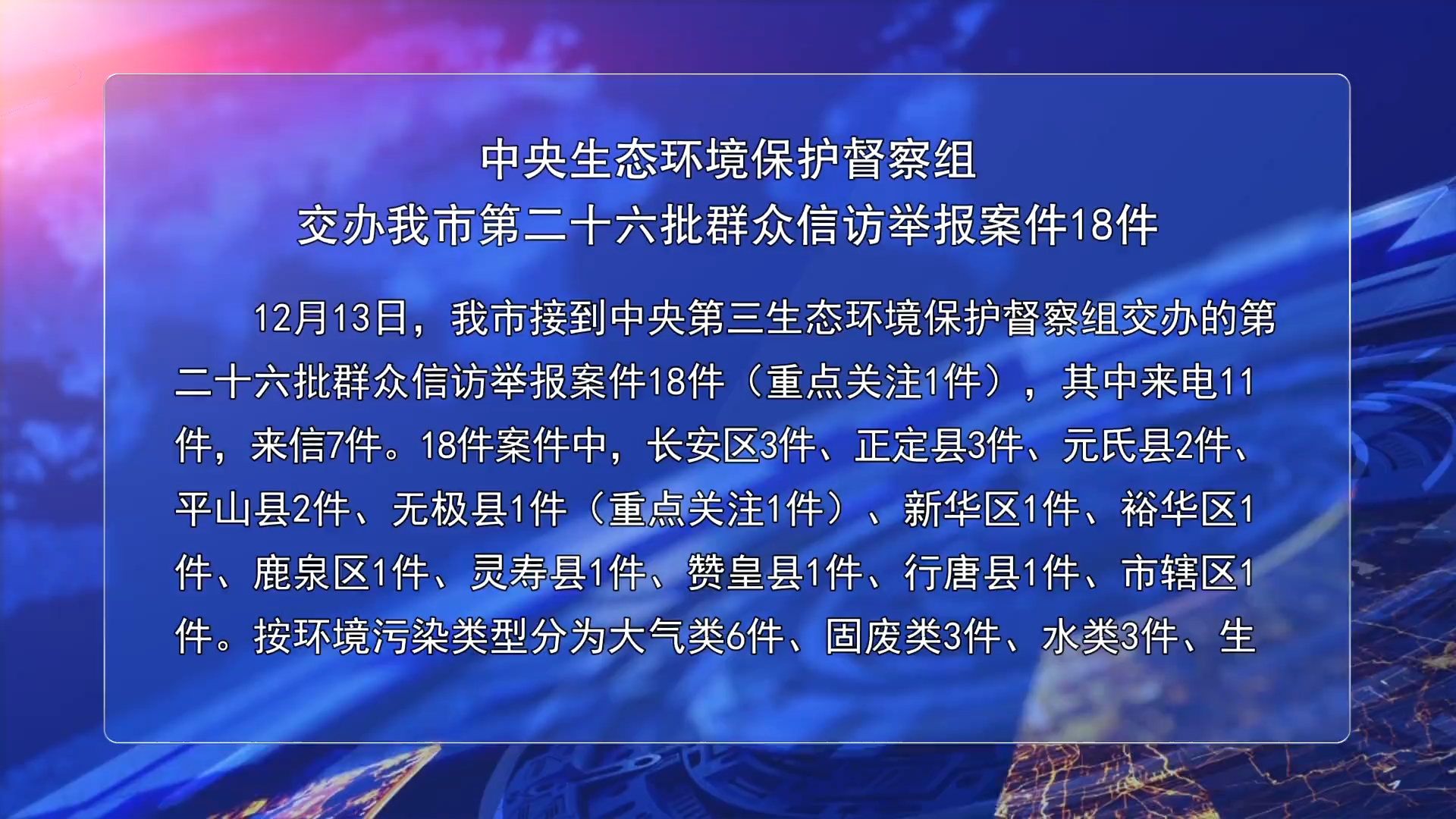中央生態環境保護督察在河北丨中央生態環境保護督察組交辦我市第二十六批群眾信訪舉報案件18件