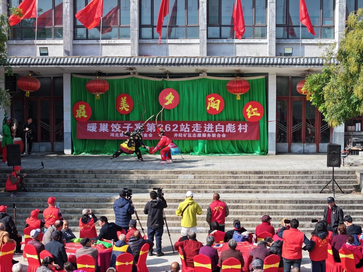 井陘礦區鳳山鎮白彪社區亮點突出,居民與志愿者共包葷素餃子,白彪紅臉社火等特色節目輪番上演,河北慈善聯合基金會聯合礦區志愿服務聯合會組織50余名志愿者,提供表演、義診、理發服務。