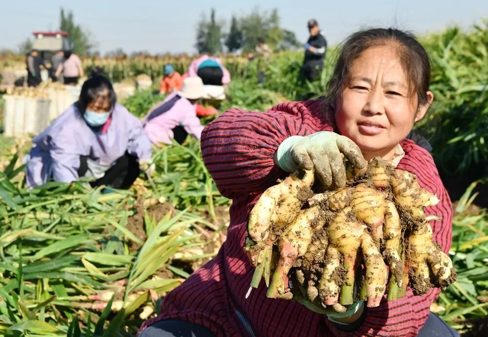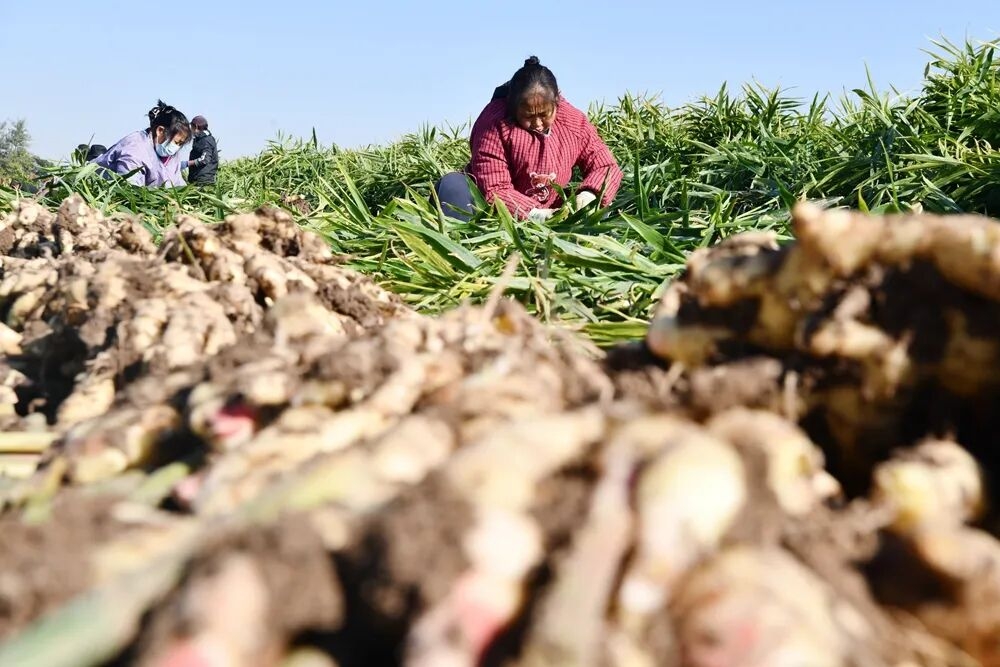 時下,正值生姜收獲季節。在石家莊市欒城區南高鄉北安莊村的姜田里,姜農們正在搶抓農時進行采收,陽光映照下,新出土的生姜色澤金黃、根莖飽滿。大家分工協作,場面忙碌而有序,這派熱火朝天的景象,成為了今秋最動人的風景。