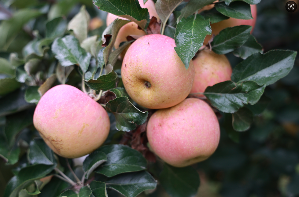 果園里,游客一邊精心挑選著心儀的果子,一邊享受采摘的樂趣。而在果園的另一邊,工人們正井然有序地忙碌著,為尚未完全成熟的蘋果進行脫袋處理,確保它們在自然光照下均勻上色,以最完美的色澤迎接八方來客。