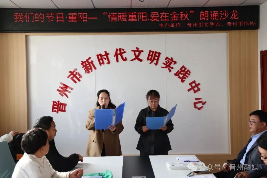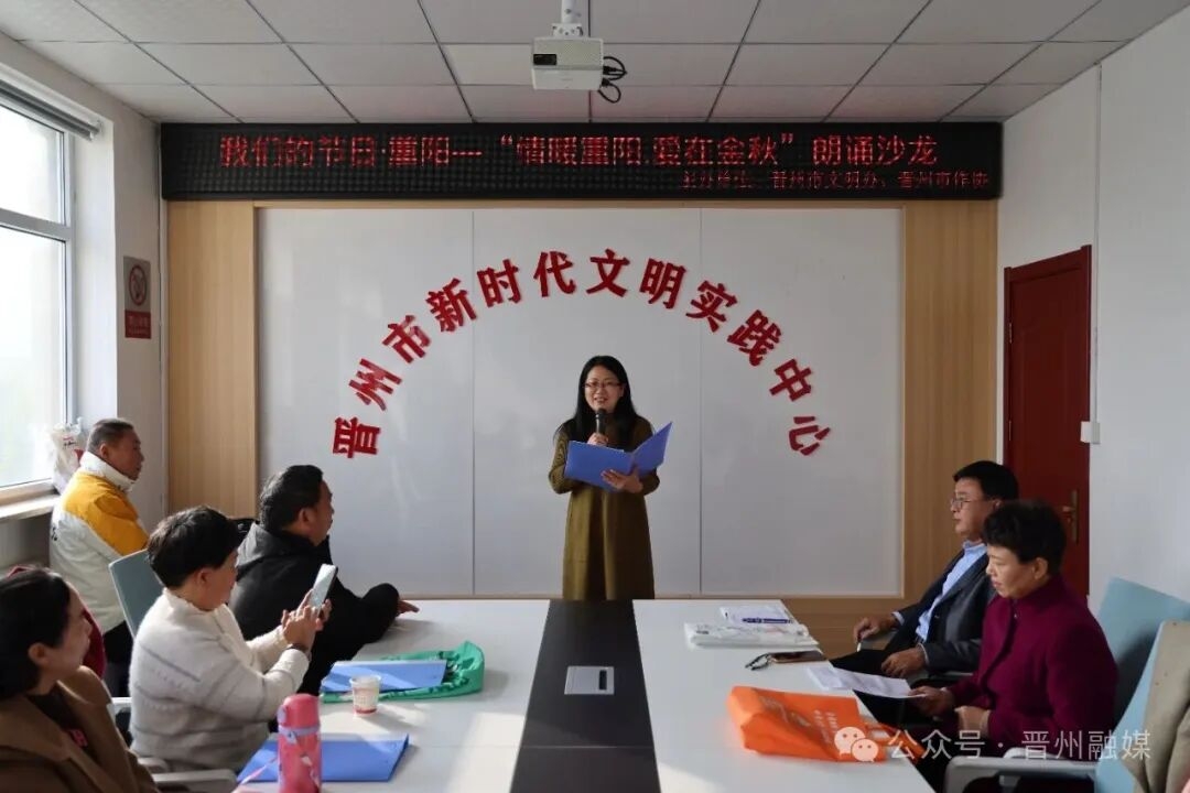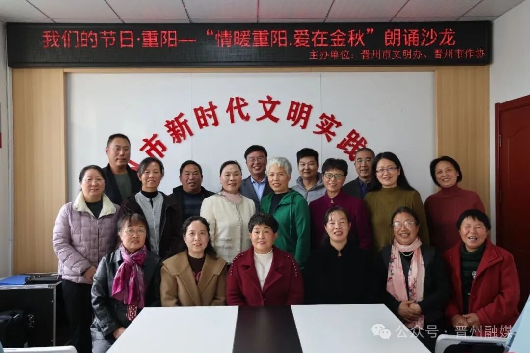 由晉州市文明辦、市作家協會聯合主辦的“情暖重陽 愛在金秋”重陽節主題朗誦沙龍,在晉州市新時代文明實踐中心四樓溫情啟幕,15名朗誦愛好者齊聚一堂,共赴一場秋日里的詩意之約。