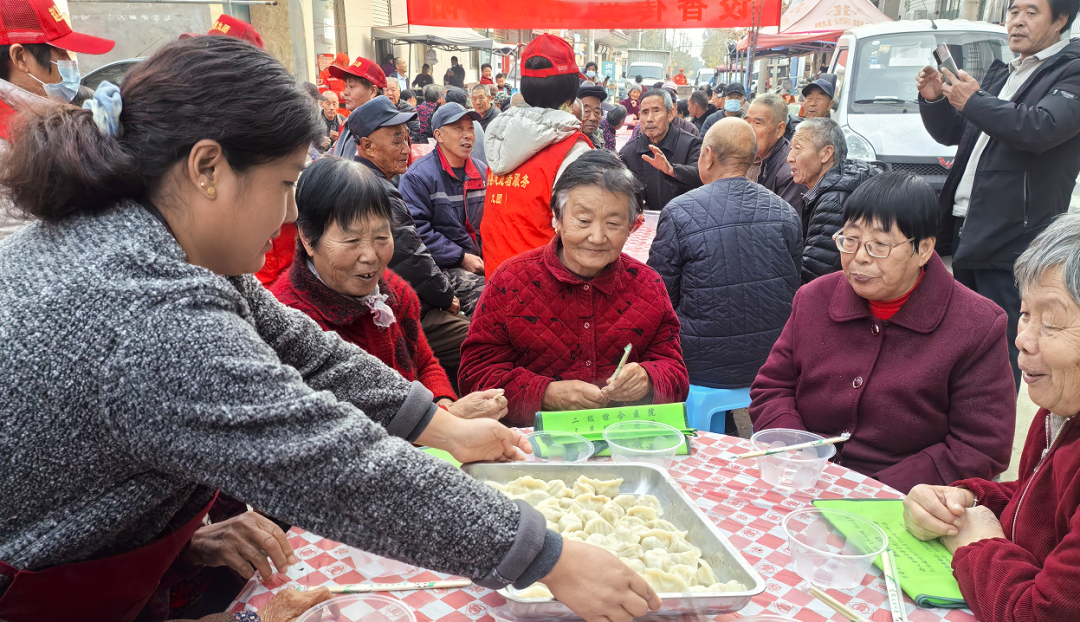 活動現場,志愿者們早早來到現場,洗手、和面、調餡、搟皮,分工協作有條不紊。大家一邊包餃子一邊與圍坐一旁的老人拉家常,歡聲笑語中,一個個飽滿圓潤的餃子陸續出鍋。老人們圍坐在一起,品嘗著熱氣騰騰的餃子,暢談著村里的新變化、新生活,臉上洋溢著幸福滿足的笑容。義診攤位前,醫護志愿者耐心為老人們測量血壓、血糖,細致詢問身體狀況,并針對高血壓、糖尿病、關節炎等老年常見疾病提供專業診療建議,講解日常用藥規范和注意事項;在義剪區域,理發師志愿者手中的剪刀上下翻飛,動作麻利地為老人們修剪頭發,手法嫻熟又溫柔。更有文藝志愿者為老人帶來了舞蹈、歌曲等精彩紛呈的節目,一首首經典老歌勾起了老人們的青春回憶,一段段歡快的舞蹈展現了新時代農村的活力。