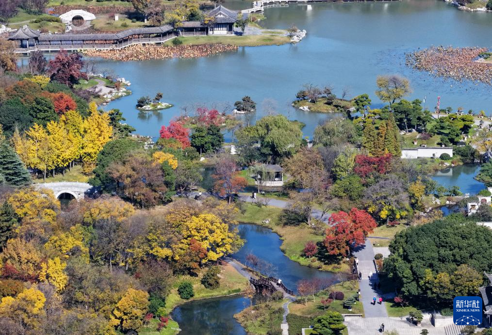 11月19日,游客在江蘇省蘇州市拙政園游玩(無人機(jī)照片)。